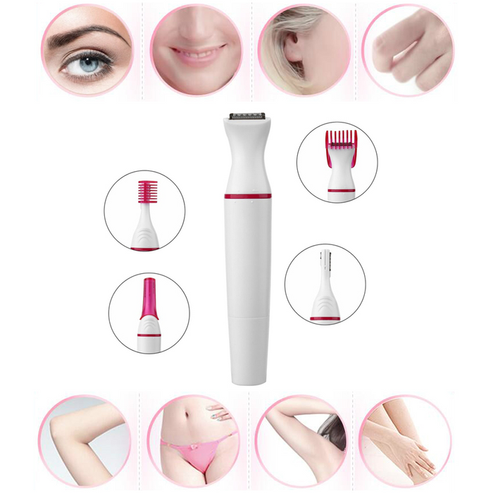 Gracias a la tecnología Doplien, desarrollada especialmente para este aparato, la Depiladora Femenina 5 en 1 depila diversas partes de tu cuerpo con la misma eficiencia. Cejas, axilas, piernas, ingle y labio superior, y cuenta con una cuchilla especial para cada área. Con solo unos minutos obtendrás los resultados que normalmente solo conseguirías después de una larga y dolorosa sesión de depilación.