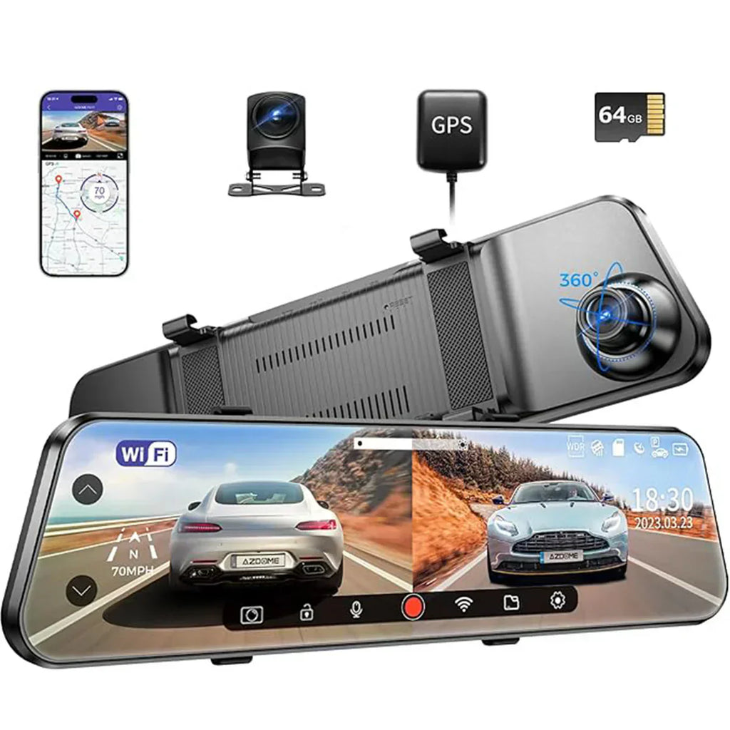 Espejo Retrovisor Azdome PG17 4K con Dual Cam, GPS, Visión Nocturna y Pantalla Táctil de 11,8"